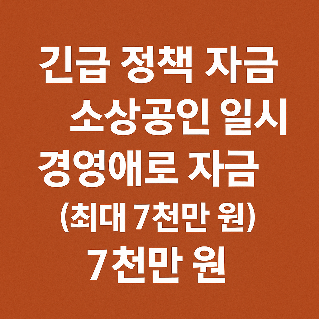 긴급 정책 자금 – 소상공인 일시적 경영애로 자금 (최대 7천만 원)