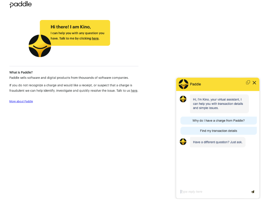 웹사이트 Paddle.net 채팅 7일 이내 Chatbot 또는 이메일