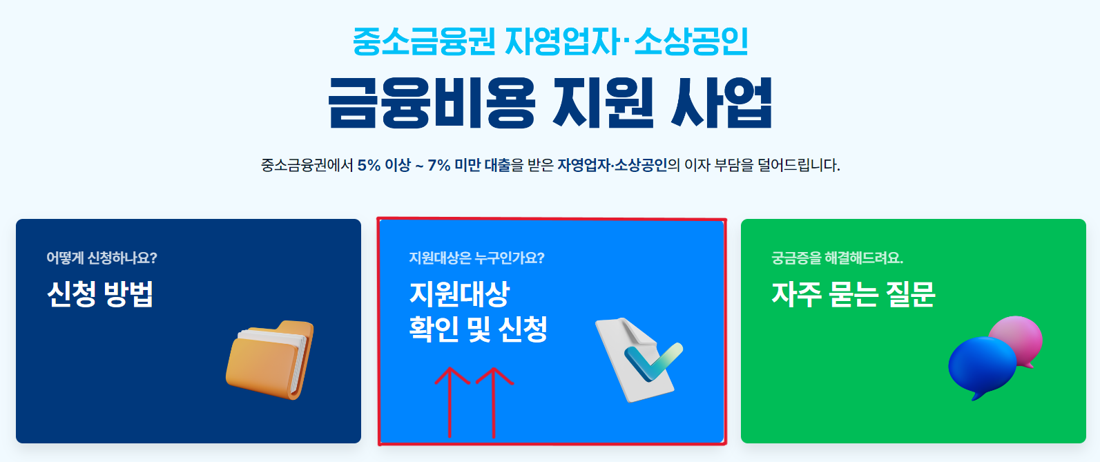 2. 지원 대상 확인 및 신청을 누릅니다.
